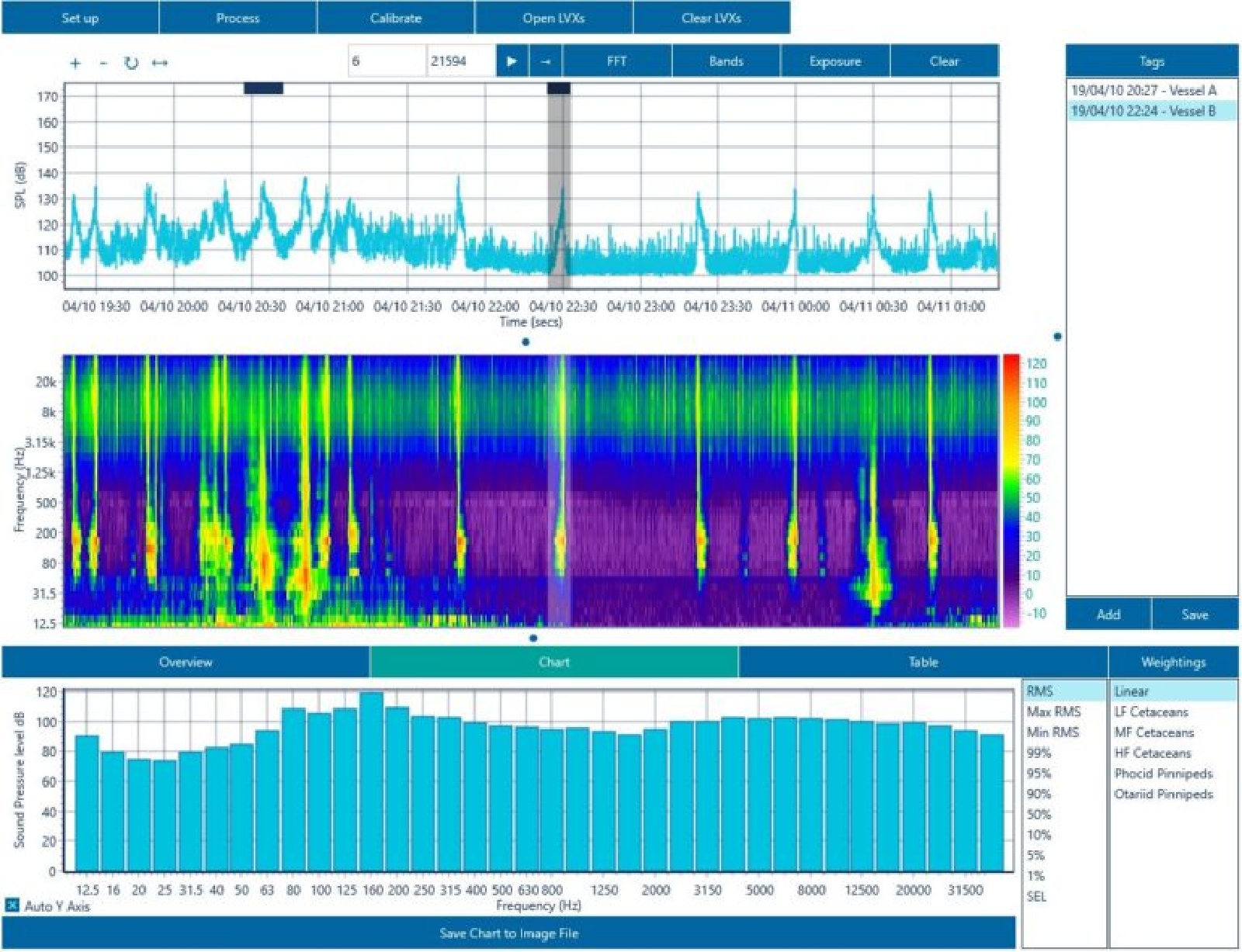 HF: Less than 37 dB re 1 μPa above 2 kHzGain Max level before clipping: 173 dB re 1 μPa Sample rates STD: 192, 96, 64, 48, 32 & 16 kHz